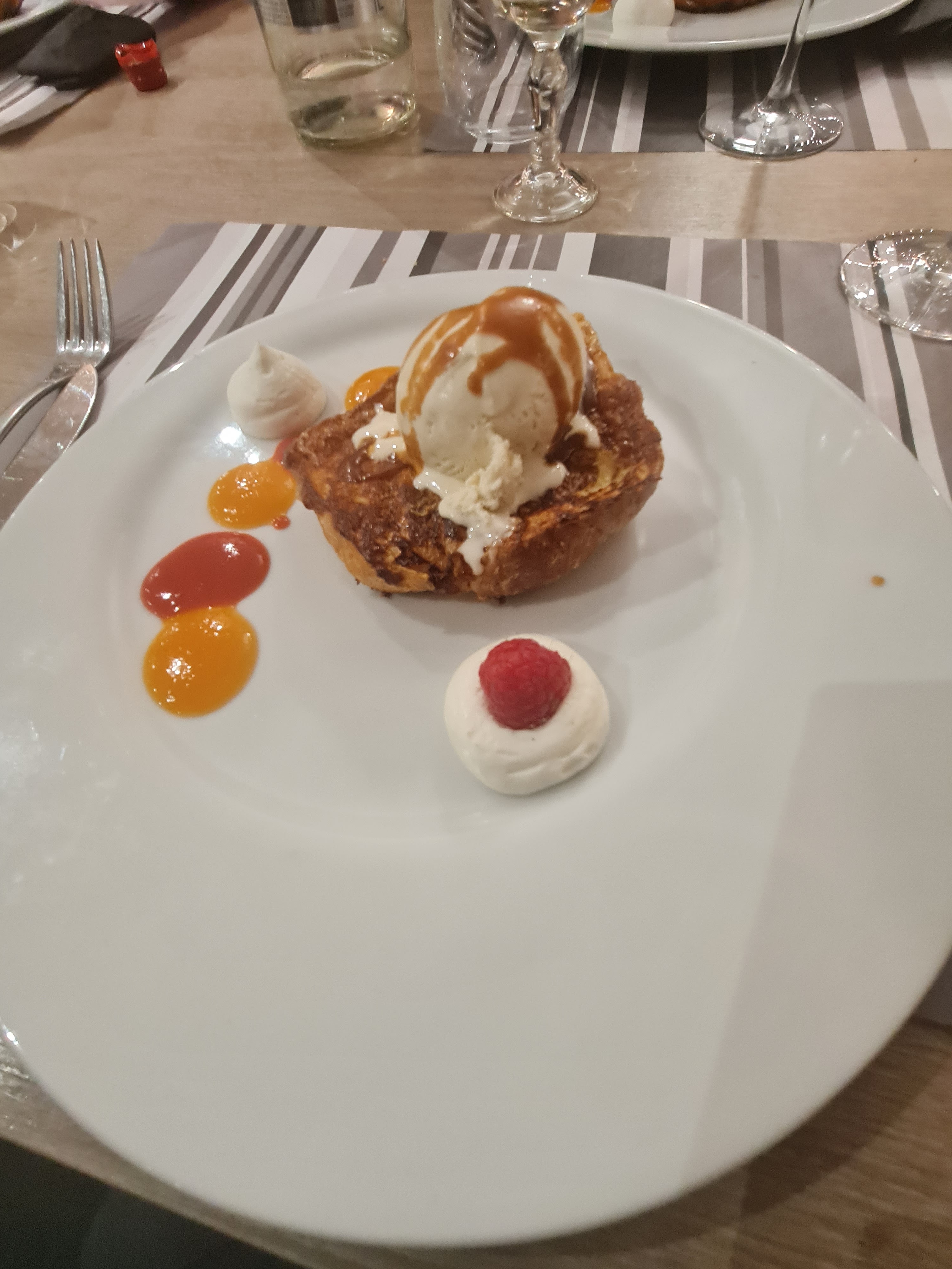 L acceuil agréable, le personnel à l écoute. Dans l'assiette du goût, il manque un brin de folie pour 1 étoile supplémentaire.